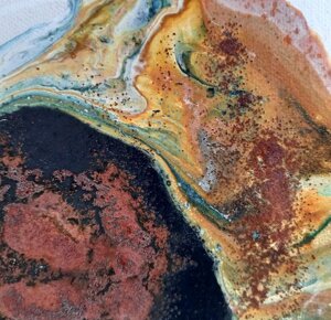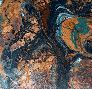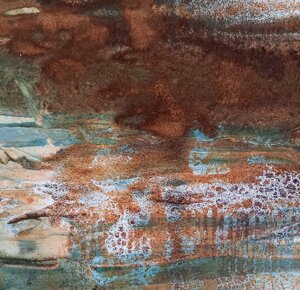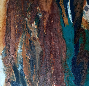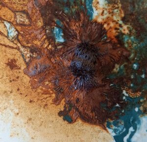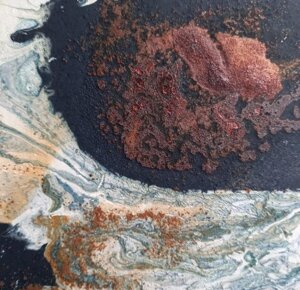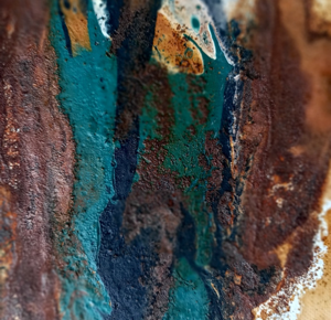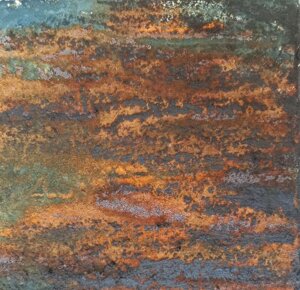 Le opere della serie Flashback diventano metafora di un viaggio nei meandri della memoria e dell’animo, e simboleggiano anche complesse relazioni immateriali e trasformazioni spirituali e sociali. Secondo l’immutabile legge del “divenire” l’apparente senso di desertificazione prende vita in un vortice di colori, sfumature, segni e materiali. Tuttavia, l’apparente senso di devastazione volge in energia positiva, la desertificazione e l’ossidazione del ferro, con le sue forze di attrazione e repulsione, diventano nuova linfa vitale, come l’Araba Fenice simbolo di resilienza, che può rinascere dalle ceneri.